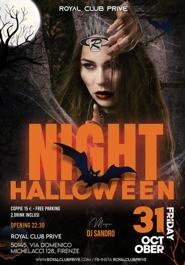 Venerdì 31 ottobre, preparati a vivere la notte più spaventosa dell'anno con il nostro Halloween Party! Atmosfera dark, costumi da brivido e divertimento fino all'alba!