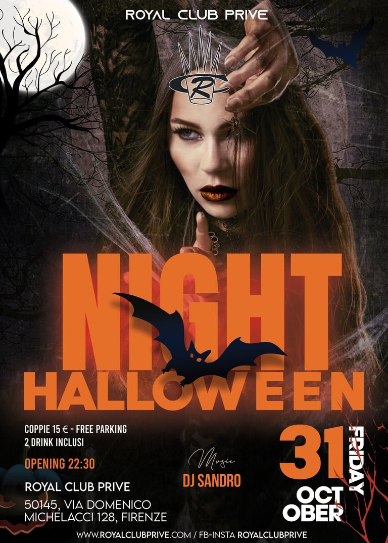 Sul palco, DJ Sandro ci farà scatenare con la sua musica da brivido . Non dimenticare il tuo costume... è la notte in cui tutto può succedere!